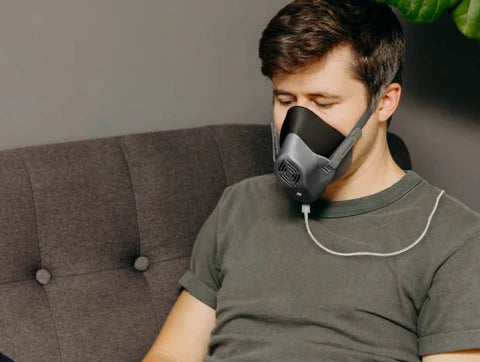 - Before placing the mask over your nose and mouth, press and release the power button once to turn the heating element on. Within 20 seconds, the mask will begin to cycle heated air at the lowest temperate setting, 130°F. (see the next question to adjust the temperature)